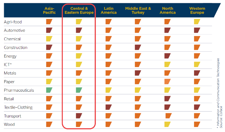 We also add an overall overview of the current assessment of the industry in individual regions from Coface: