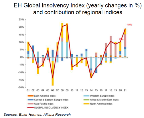 Current developments should clearly have a negative effect on the increase in insolvencies. However, as we have already mentioned, the support measures of individual governments, together with changes in the legislation of countries introducing a new or simplified form of protection against creditors, caused the number of insolvencies to decrease by 6% worldwide. We observe a similar scenario in the case of Slovakia and the Czech Republic. However, when comparing the years 2021 and 2019, the expectations of insurance companies do not change. There should be more than a 30% increase.