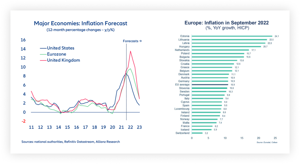 Zbytek světa na tom však nebude zase o tolik lépe. Růst globálního HDP se zpomalí z 2,7 % v roce 2022 na odhadovaných 1,5 % v roce 2023. Stejný scénář jako Eurozónu však s velkou pravděpodobností potká i USA, které se v roce 2023 podle společnosti Allianz propadnou do mírné recese – zámořská ekonomika konkrétně klesne o 0,7 %. V obou případech by měly být ekonomiky v červených číslech v prvních dvou kvartálech. Jedním z důvodů této předpovědi je aktuální snaha centrálních bank zpomalit inflaci zvyšováním úrokových sazeb, a to i za cenu případné recese.